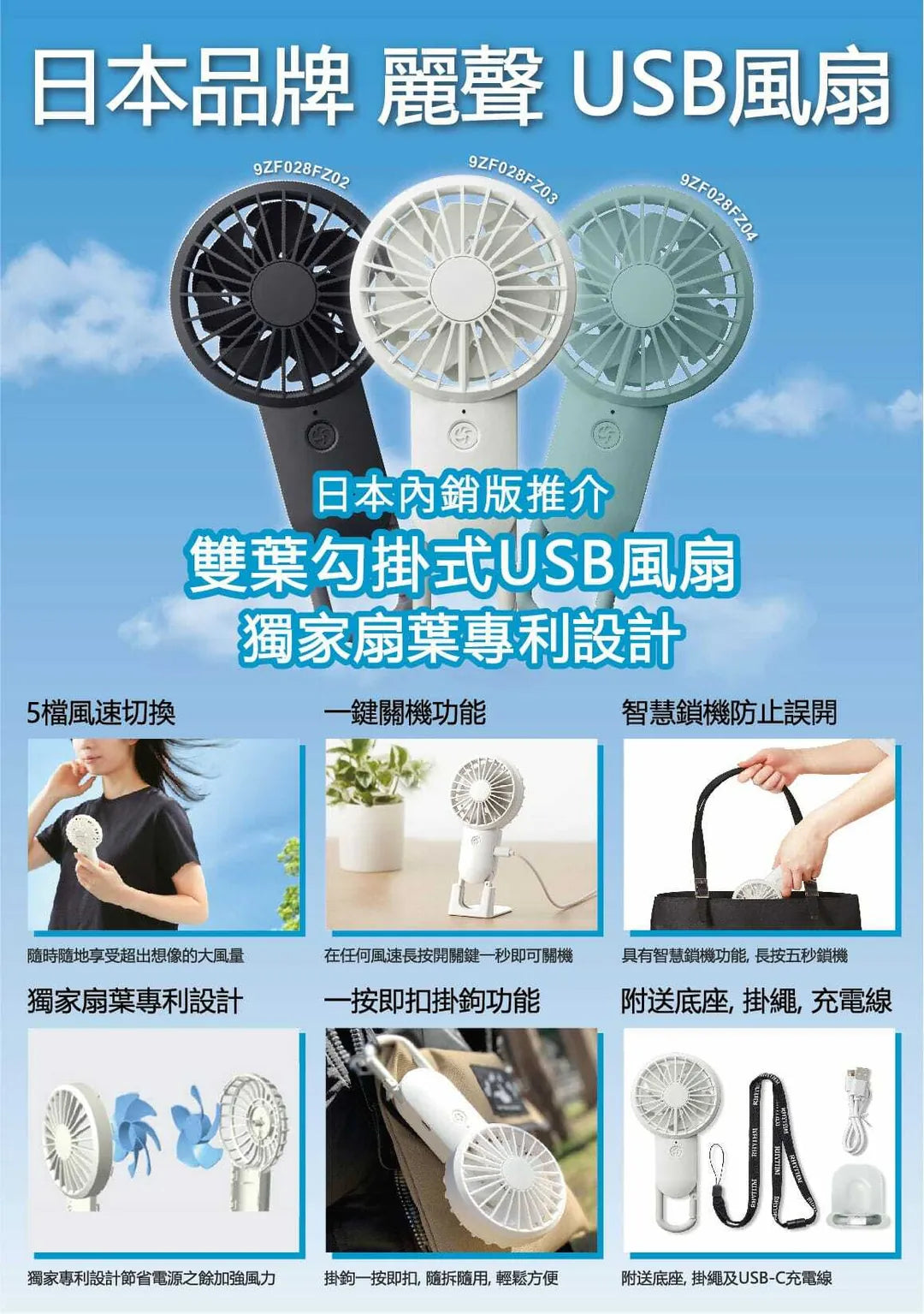 日本 Rhythm Silky wind mobile 2 勾掛式雙葉手提風扇