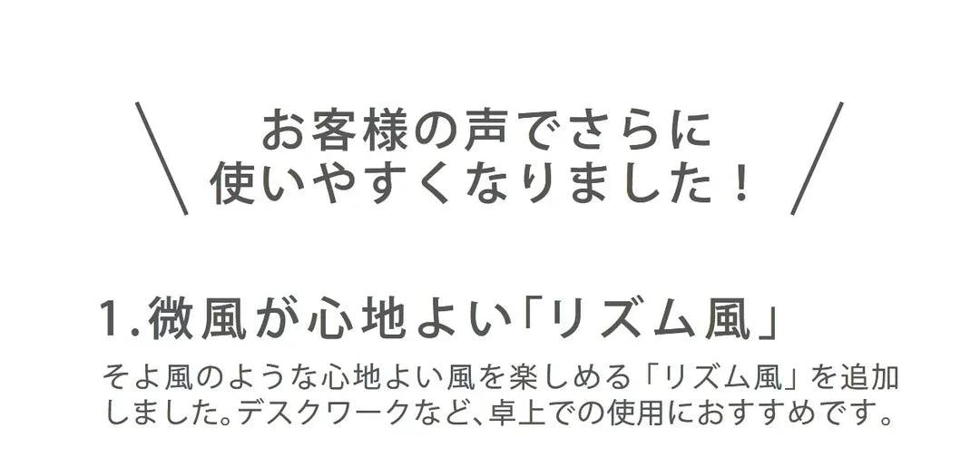 營造柔和微風輕拂風速,最適合桌扇模式時使用