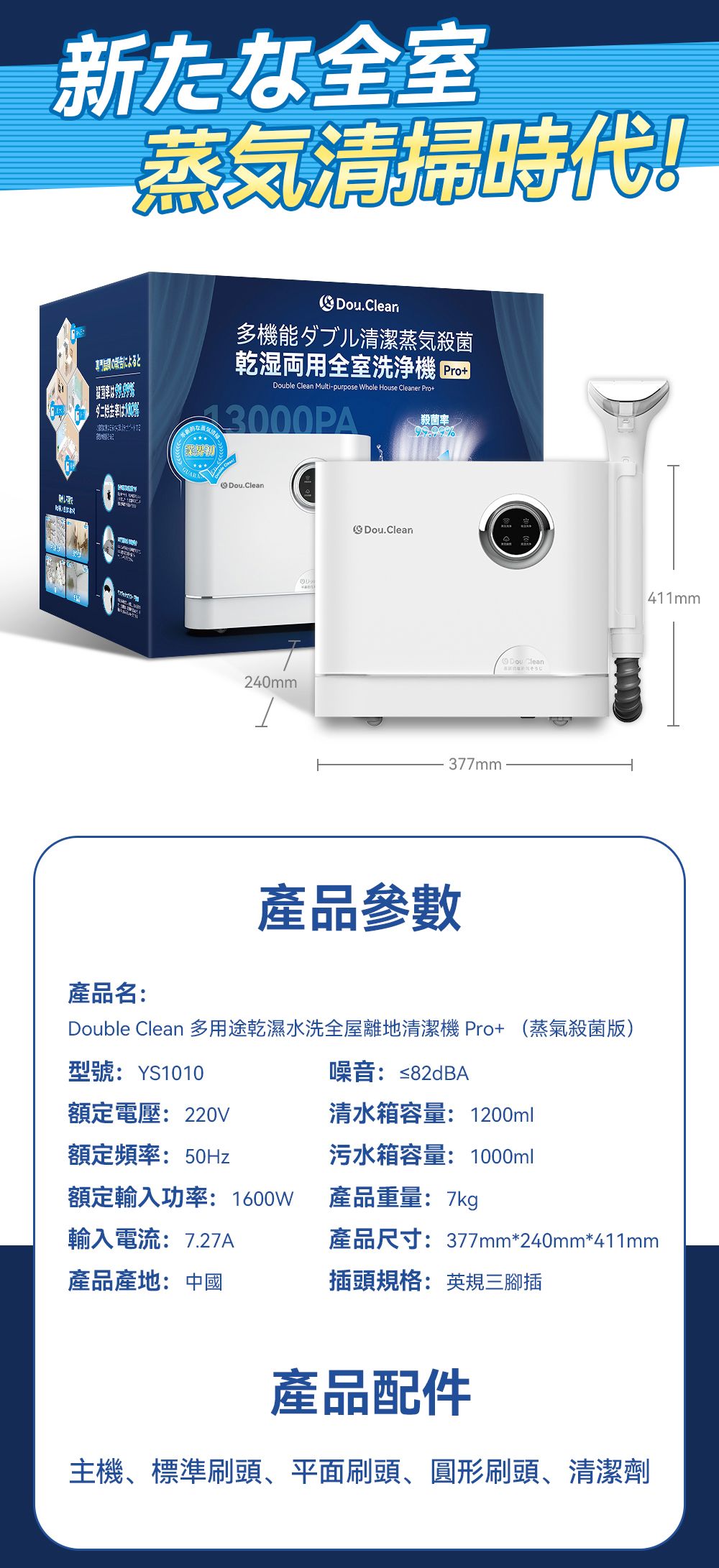 日本Double Clean 多用途乾濕水洗全屋離地清潔機 Pro+ (蒸氣殺菌版)