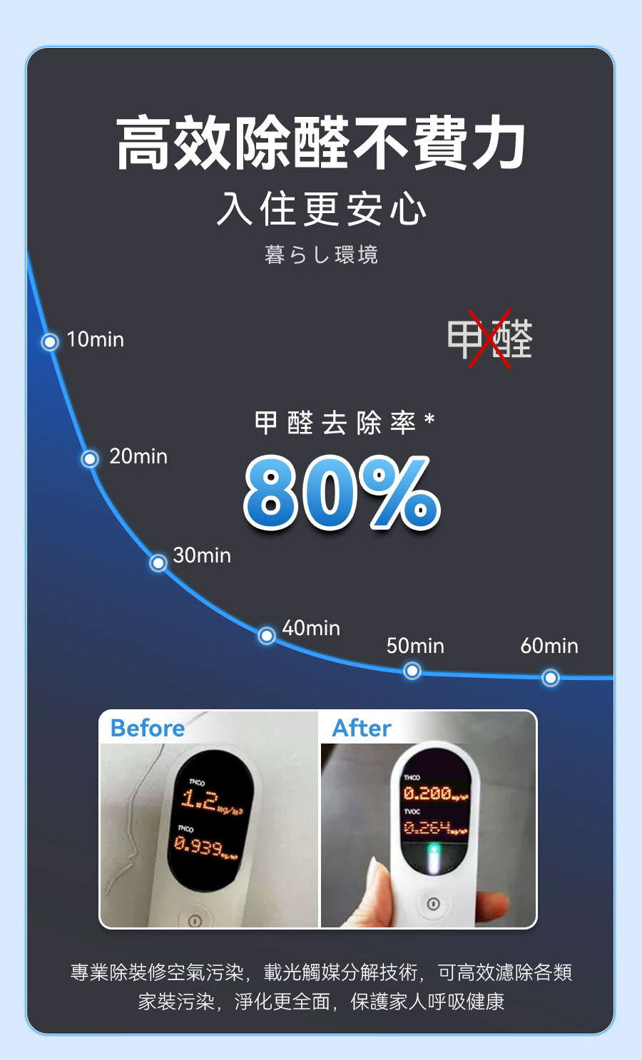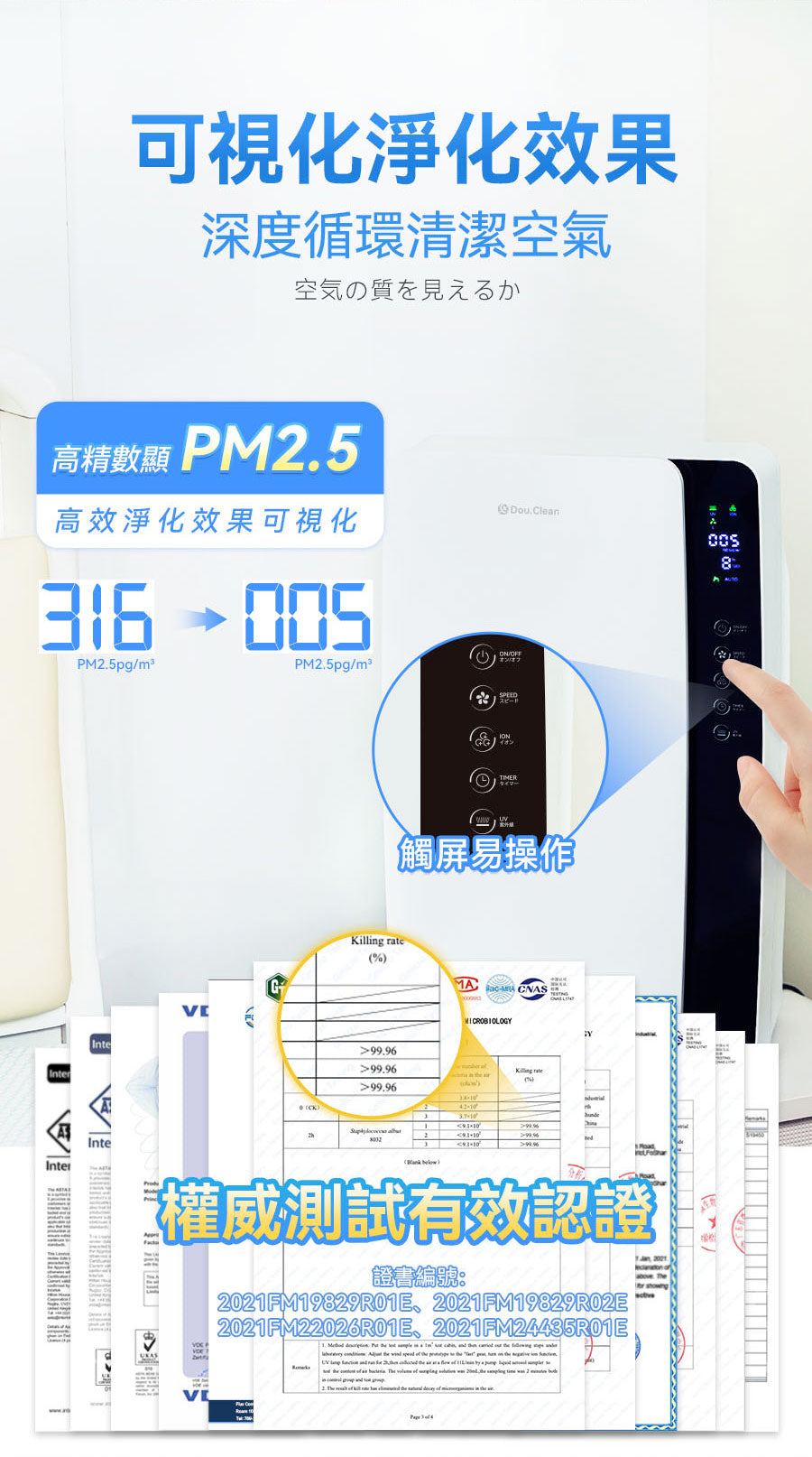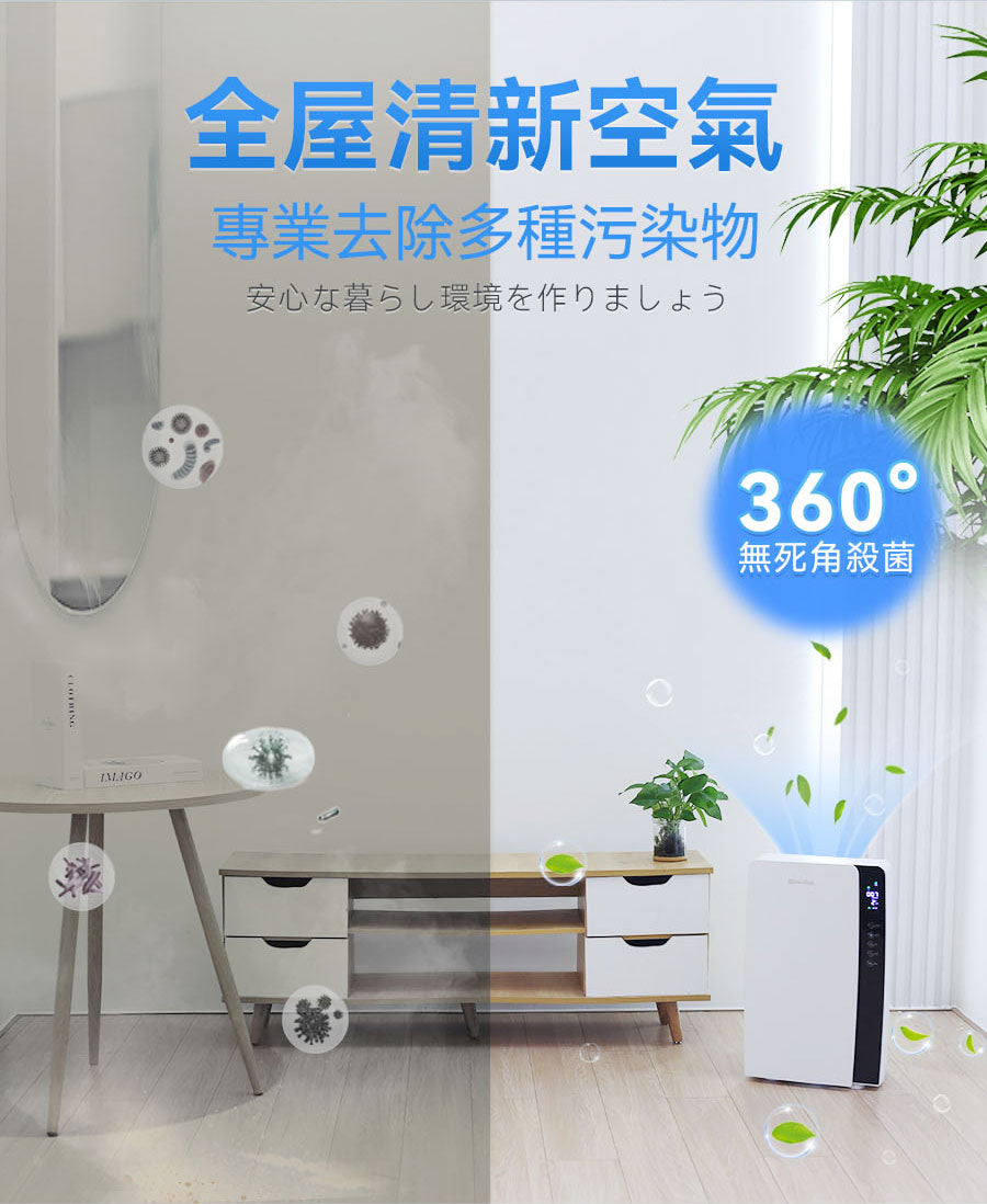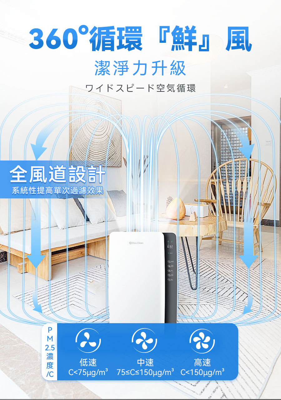5. 360°過濾循環淨化大風量遍佈空間,數字化PM2.5,實時顯示空氣質量。