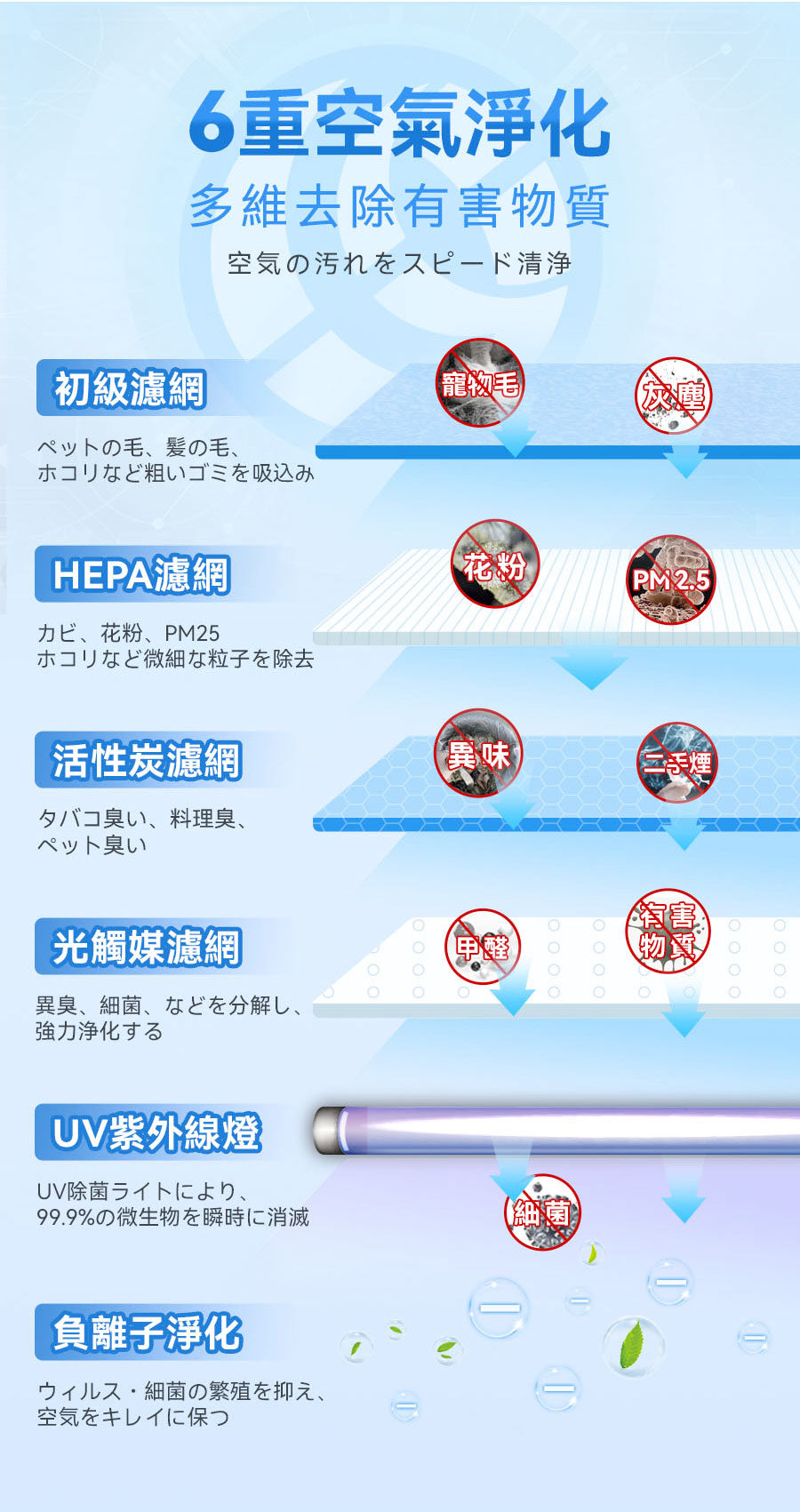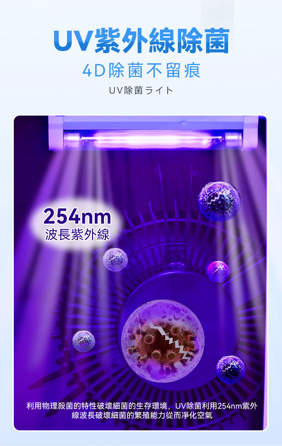 3. 醫療級UV紫外燈+光觸媒,4D除菌不留痕。內置負離子發生器,清新環境空氣。