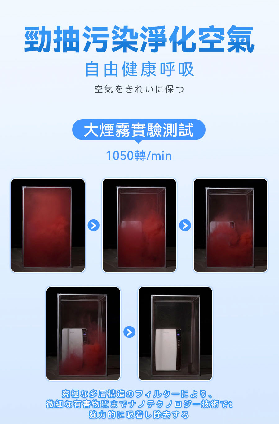 2. 四層漸進式濾網,去除空氣中99.97%小至0.3微米的顆粒物。