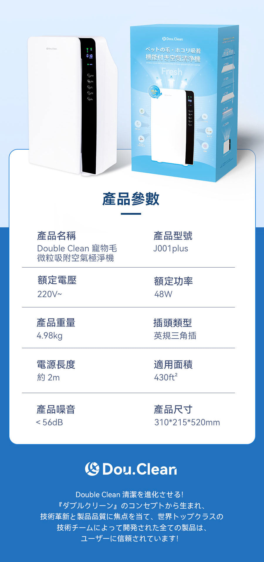 日本Double Clean 寵物毛微粒吸附空氣極淨機