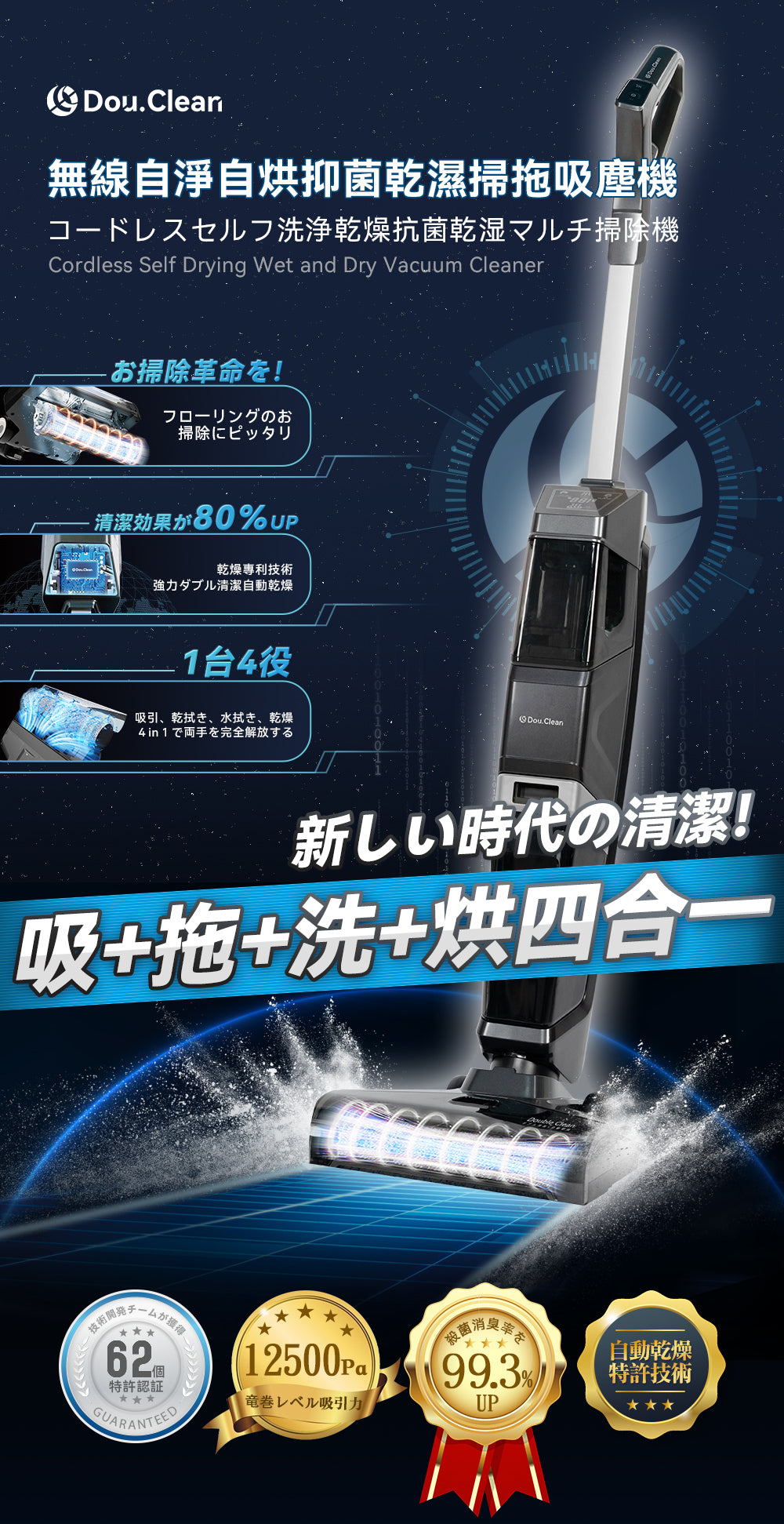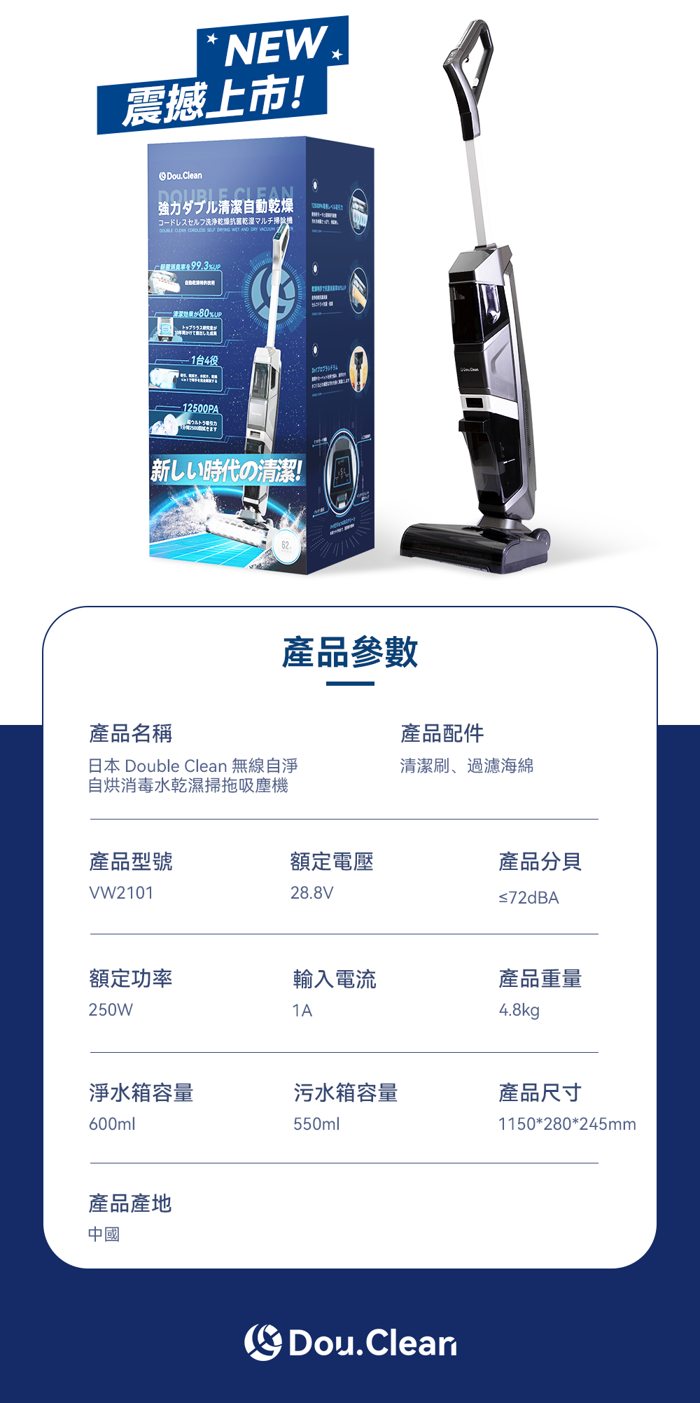 Double Clean無線自淨自烘抑菌乾濕掃拖吸塵機